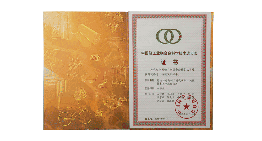 日前,中國輕工業(yè)聯合會對2018年度在科技發(fā)明及技術創(chuàng)新方面表現突出的企業(yè)及項目進行了表彰,由金字參與的“傳統(tǒng)特色肉制品現代化加工關鍵技術及產業(yè)化應用”項目經審定及批準,喜獲中國輕工業(yè)聯合會科技進步獎一等獎。