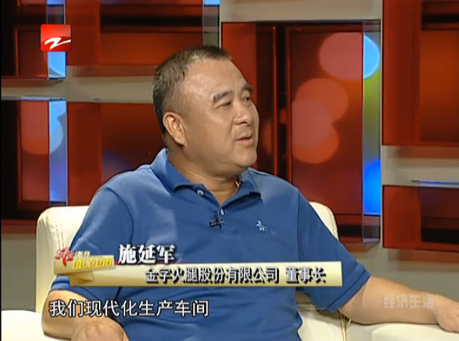 8月23日播出的《風(fēng)云浙商面對(duì)面》收視率迎來一個(gè)新高,這期節(jié)目邀請到了一位特殊的嘉賓——金字火腿股份有限公司董事長施延軍。如何將“浙江三寶“之一的金華火腿產(chǎn)業(yè)做到上市,為何能在風(fēng)靡中國的《舌尖上的中國》紀(jì)錄片中亮相,怎樣將火腿這一產(chǎn)業(yè)做到與歐洲一樣?施延軍董事長在節(jié)目進(jìn)行中向觀眾逐一解答,并首次在電視媒體上回顧了金字20多年的發(fā)展歷程。