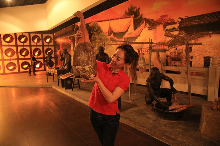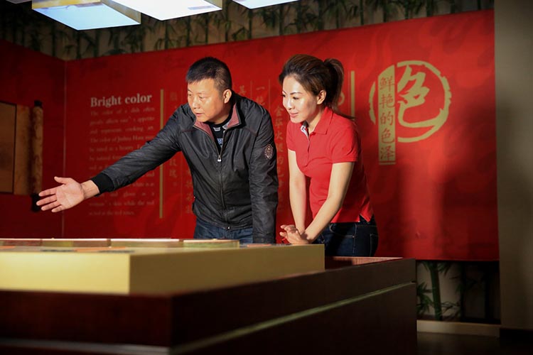 在火腿博覽館取景的過程中,主持人對火腿制作工藝和火腿的造型產(chǎn)生了濃厚的興趣:修胚、上鹽、洗曬、整形、發(fā)酵、聞香等工序不但精細(xì)且充滿了儀式感。陳師傅向她介紹:傳統(tǒng)火腿制作工藝工序多達36道,金字火腿遵循古法工藝制作,保證金字出產(chǎn)的每一條腿都是“復(fù)古”的“美味腿“。為什么說是美味腿?在金字火腿的中國火腿博覽館內(nèi),欄目組對著一桌的仿真火腿菜肴大呼驚嘆,忍不住都想拿起筷子吃上兩塊。