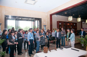 “Jinhua ham is so magical”,”This is delicious”“Good,Good”······5月9日上午,在 由金字興建的國(guó)內(nèi)唯一的中國(guó)火腿博覽館及世界火腿博覽館場(chǎng)館內(nèi)異常熱鬧,一聲聲包含著好奇、驚嘆、稱(chēng)贊的英文不絕于耳。原來(lái),是來(lái)自英國(guó)、湯加、毛里求斯等20國(guó)駐華使節(jié)50余人訪(fǎng)問(wèn)團(tuán)在參觀(guān)考察……
