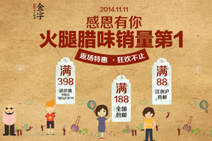 入了12月的江南,空氣中總會(huì)飄散著一股似近似遠(yuǎn)的肉香味,勾人魂魄到直咽口水。窗檐下懸掛的香腸臘肉有一種“年之將近”的即視感,因?yàn)槟蔷褪强痰焦亲永锏哪晡栋?。就算時(shí)代再變化,“小雪腌菜,大雪腌肉”的習(xí)慣依然被懂得生活的人代代傳承著。2014年的金字天貓旗艦店雙12來(lái)了,為您準(zhǔn)備的好臘味上新,十二道臘味年前抄底價(jià)。春運(yùn)車(chē)票已經(jīng)可以買(mǎi)了,臘味也同樣:回家過(guò)春節(jié),你準(zhǔn)備好了沒(méi)有?